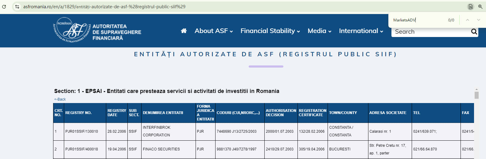 In addition, the Comisión Nacional del Mercado de Valores (CNMV) added MARKETS ADV to its warning list for providing investment services without authorization.