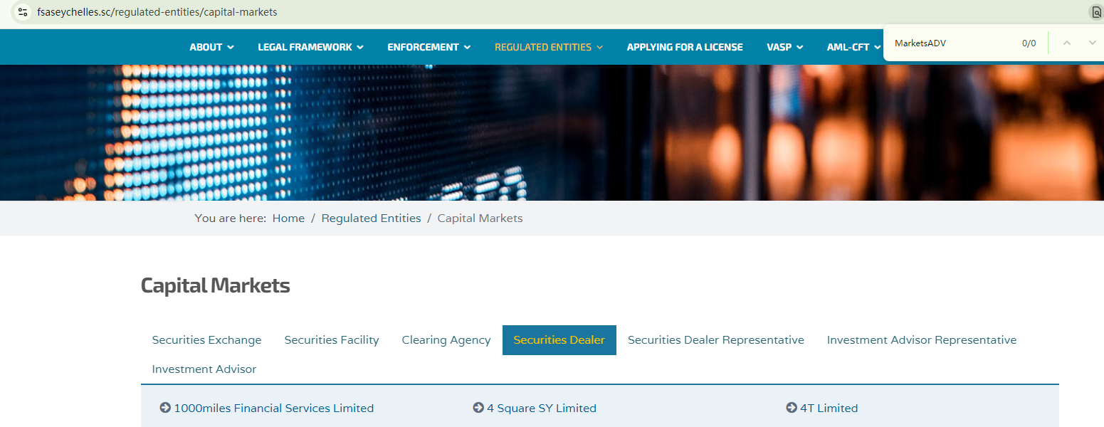 The website MARKETS ADV, registered in May 2024, suspiciously claims to have obtained licenses from several financial regulators. However, the licensing process is both time- and resource-intensive. Our search through the registers of the mentioned authorities found no corresponding records for MARKETS ADV, indicating that its claims of being multi-authorized are false.