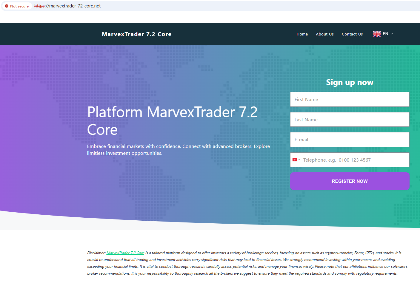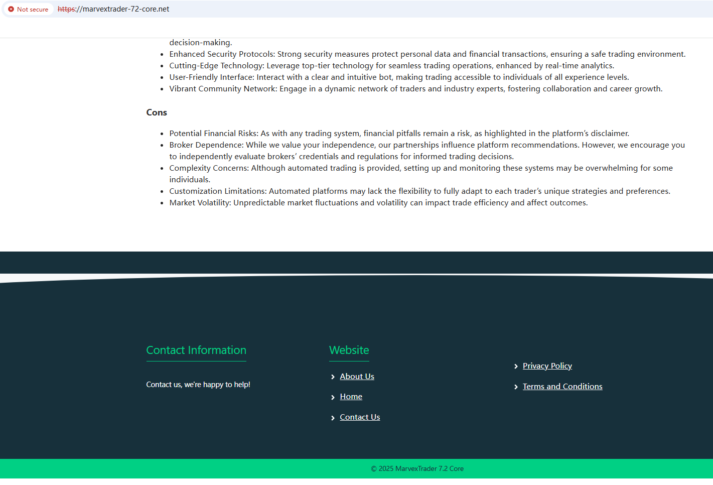 Given these concerns, MarvexTrader 7.2 Core appears to be a fraudulent operation.