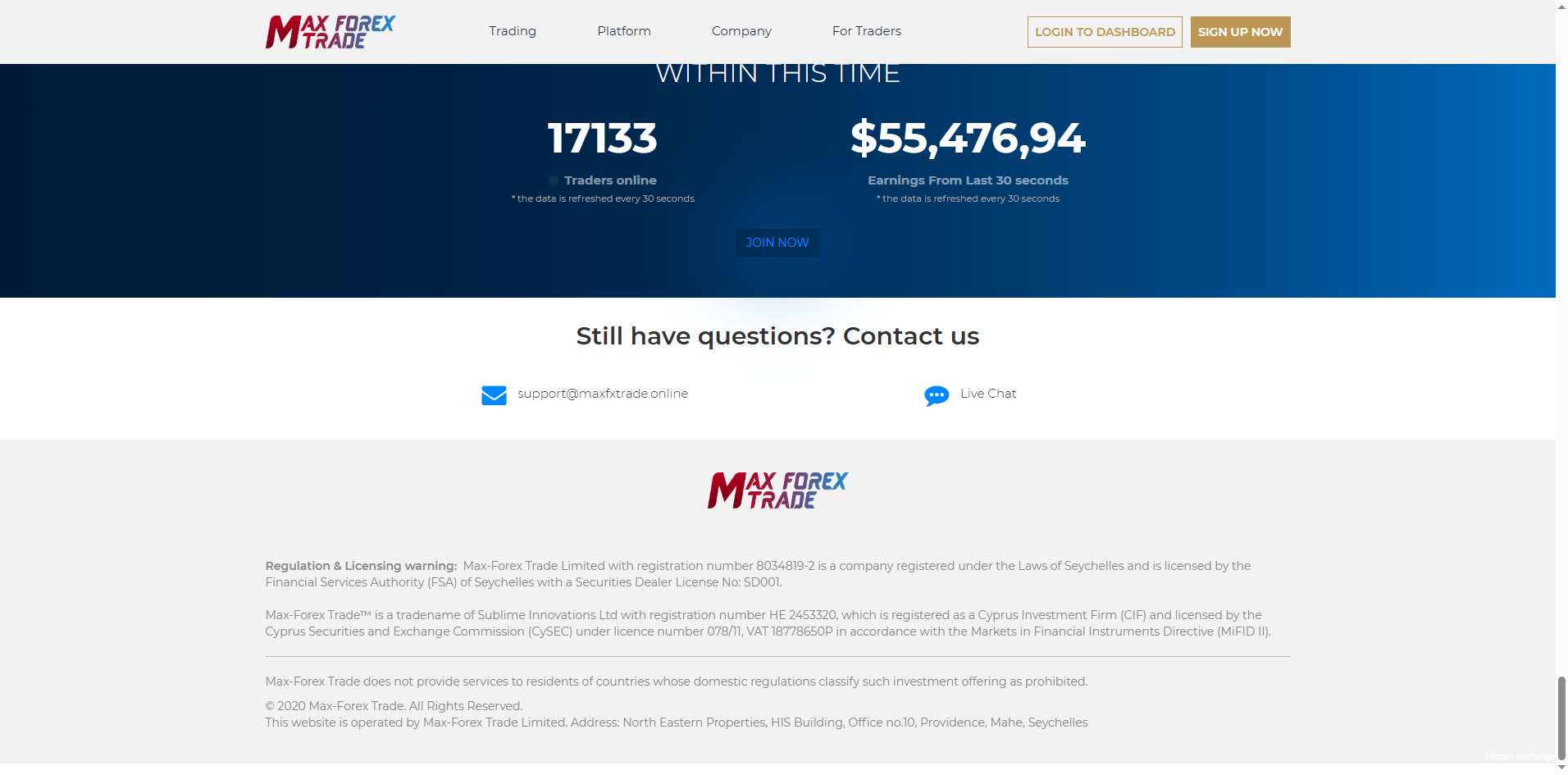 Given that both of Max Forex Trade’s regulatory claims are false and entirely unverifiable, Max Forex Trade appears to be a fraudulent operation.
