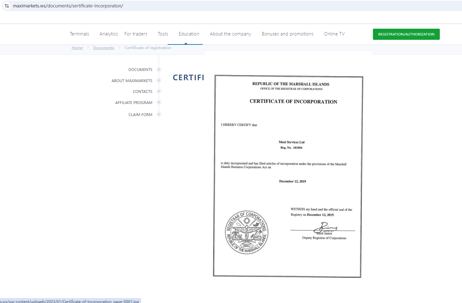 According to its website, it claims to be regulated by the Marshall Islands Registry (IRI). Upon investigation, we found relevant information in IRI, but as we all know, IRI does not have the right to regulate foreign exchange, so this certificate alone cannot serve as a regulatory guarantee.