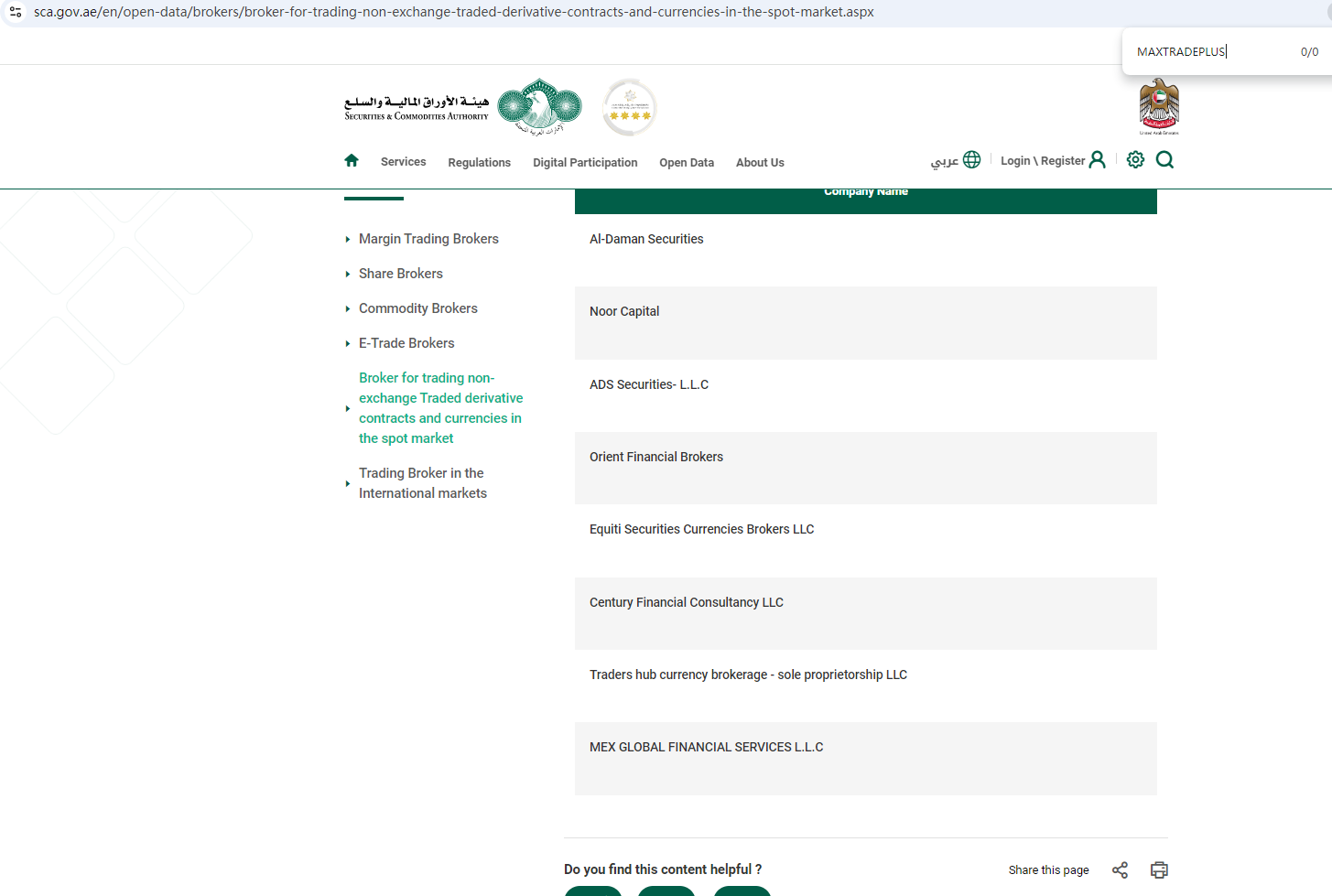 According to its website, it claims to be regulated by the Financial Conduct Authority (FCA) and Securities and Commodities Authority (SCA). Upon investigation, no matching information was found in the FCA and SCA.