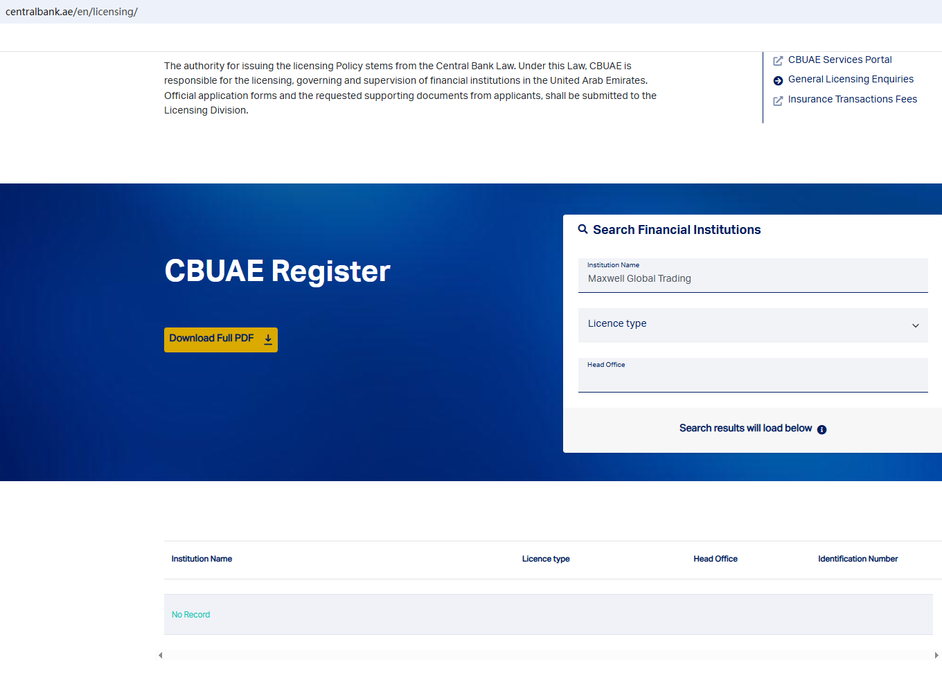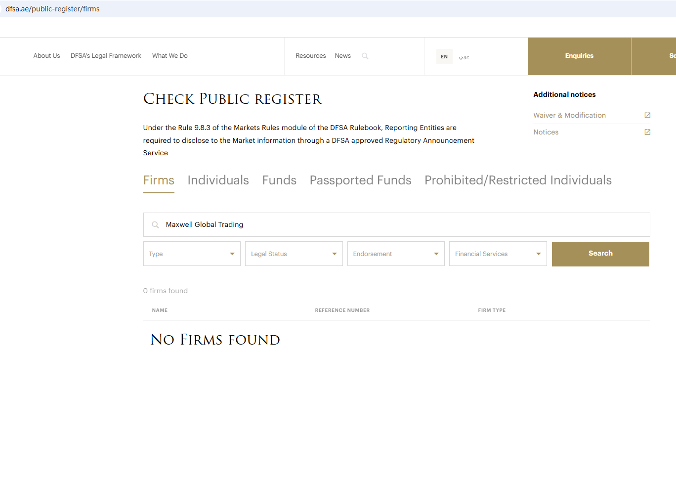 Based on the office address displayed on its website, we checked the relevant local regulatory authorities and found no matching information among British Virgin Islands Financial Services Commission (BVI FSC), DuBai Financial Services Authority (DFSA), Central Bank of U.A.E. (CBUAE) and Securities and Commodities Authority (SCA).