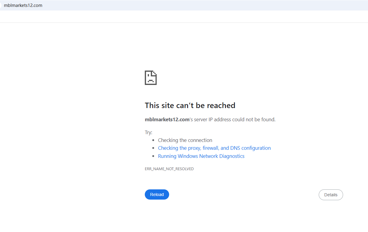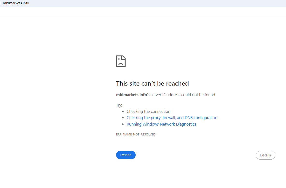 BrokersView found that the domains "https://mblmarkets12.com/; https://mblmarkets.info/" are currently inaccessible. This is widely regarded as a significant red flag, as the suspension of a broker's website often points to underlying regulatory or operational issues.
