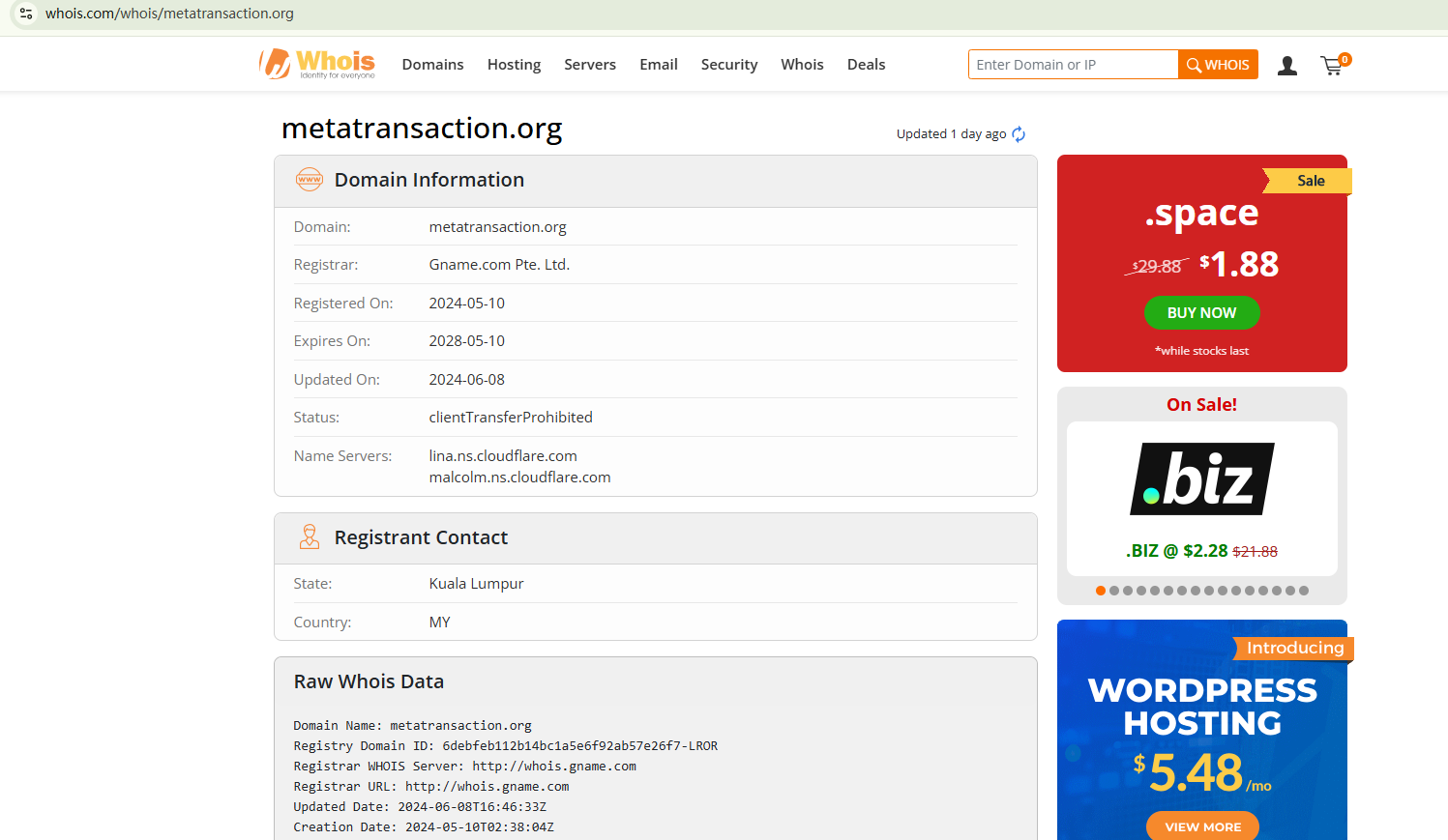 BrokersView found that the domain "https://metatransaction.org/" is currently inaccessible. This is widely regarded as a significant red flag, as the suspension of a broker's website often points to underlying regulatory or operational issues.
