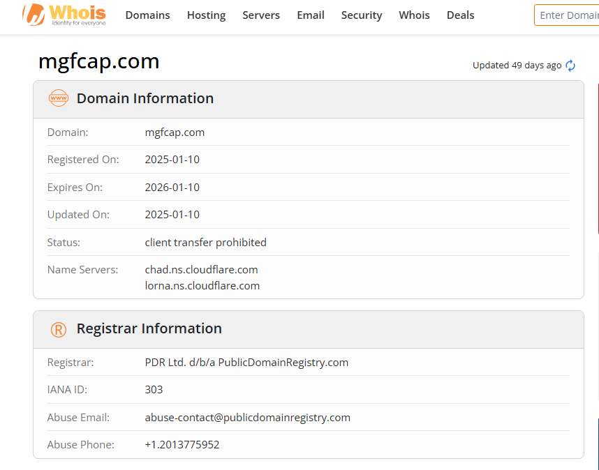 During our investigation, we did locate a similarly named entity in ASIC’s public register: MGF CAPITAL PTY LTD, which has held an ASIC license since 2012. However, this legitimate company has not registered any domain names with ASIC, and more tellingly, the website of MGF Capital was only bulit in January 2025. This significant time gap strongly suggests that the platform may be impersonating the licensed entity by misappropriating its regulatory credentials to appear legitimate.