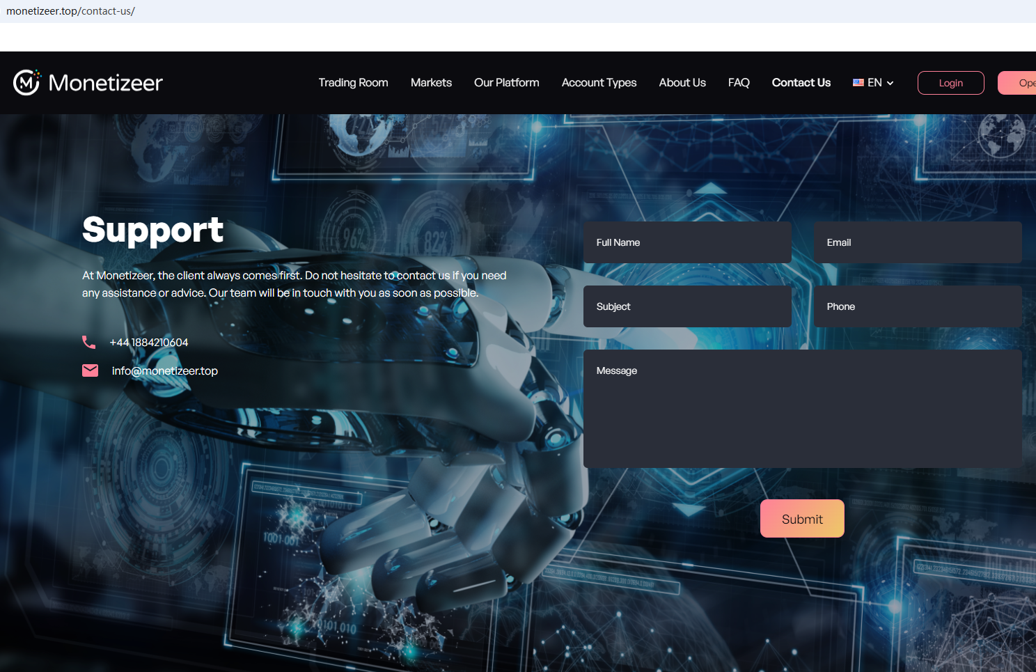 It is located in the UK. Upon investigation, no matching information was found in the Financial Conduct Authority (FCA). What's more, the Italian Companies and Exchange Commission (CONSOB) ordered Monetizeer to be blacked out since it offers financial services illegally in Italy.