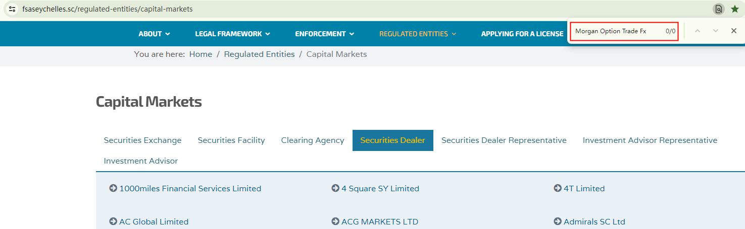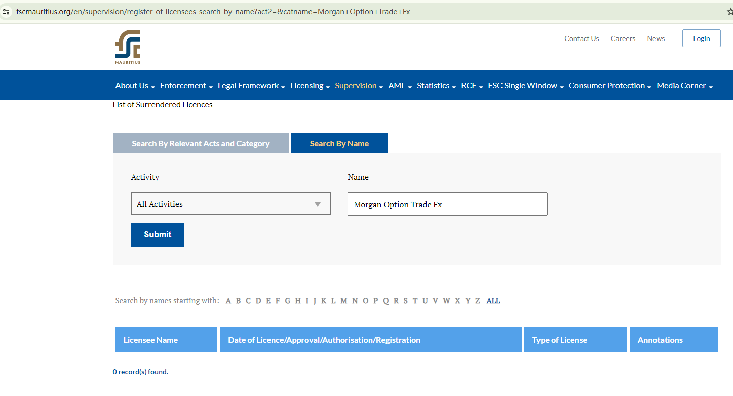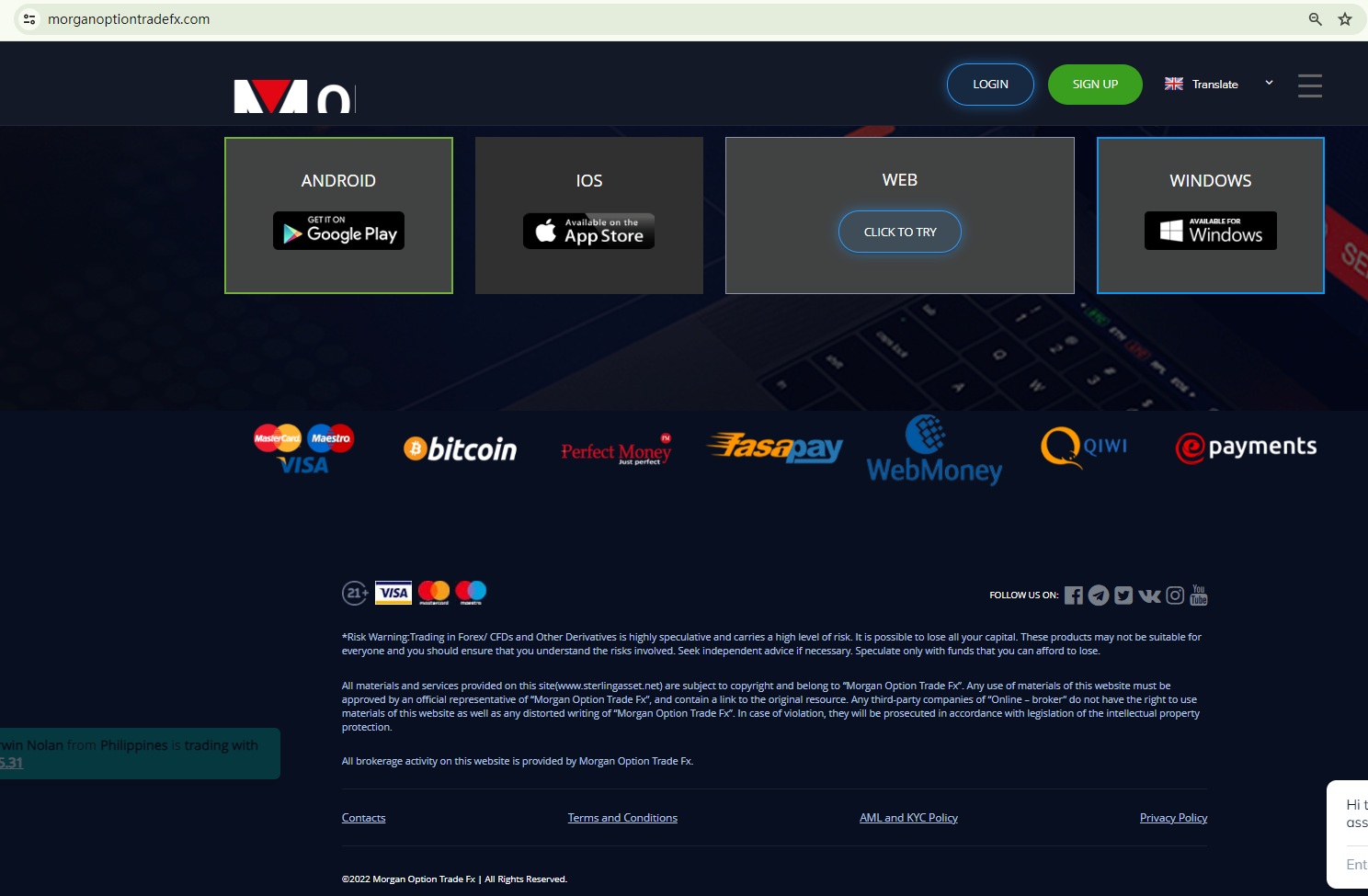 In essence, Morgan Option Trade Fx is not regulated by any governing body. Entrusting this broker with investors' funds is highly risky, as there are no legal protections in place to safeguard the funds.