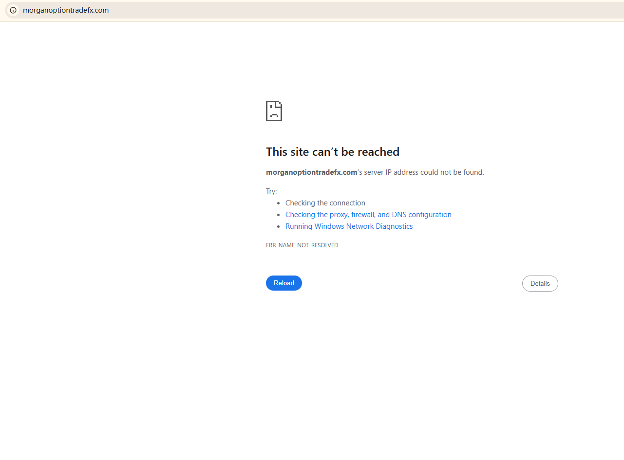 BrokersView found that the domain "https://morganoptiontradefx.com/" is currently inaccessible. This is widely regarded as a significant red flag, as the suspension of a broker's website often points to underlying regulatory or operational issues.