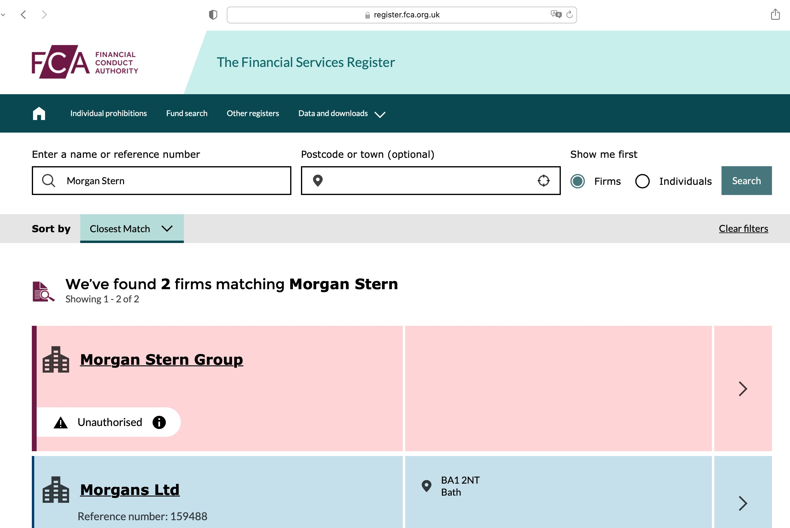 Morgan Stern claims to be a reliable company without presenting any information about its regulation. It locates in the United Kingdom, we searched the United Kingdom Financial Conduct Authority (UK FCA) but found no matching results.
