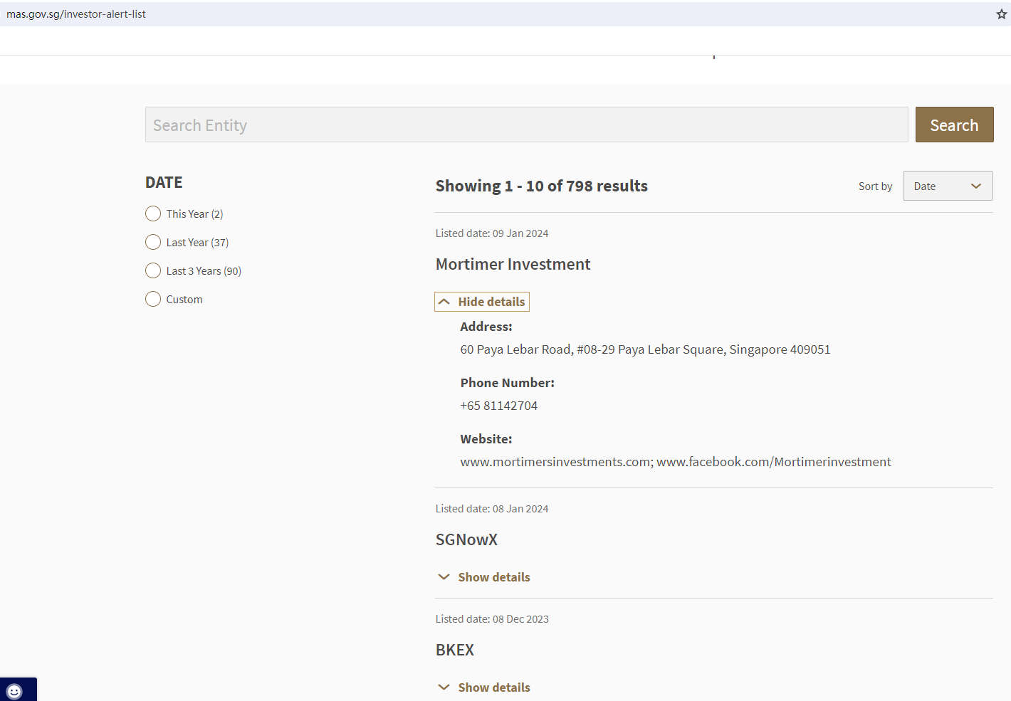 On 8 January 2024, the Monetary Authority of Singapore (MAS) issued a warning that Mortimer Investment was providing financial services or products without authorisation. You may visit: https://www.mas.gov.sg/investor-alert-list