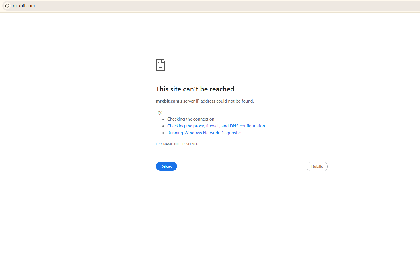 BrokersView found that the domain "https://mrxbit.com/" is currently inaccessible. This is widely regarded as a significant red flag, as the suspension of a broker's website often points to underlying regulatory or operational issues.