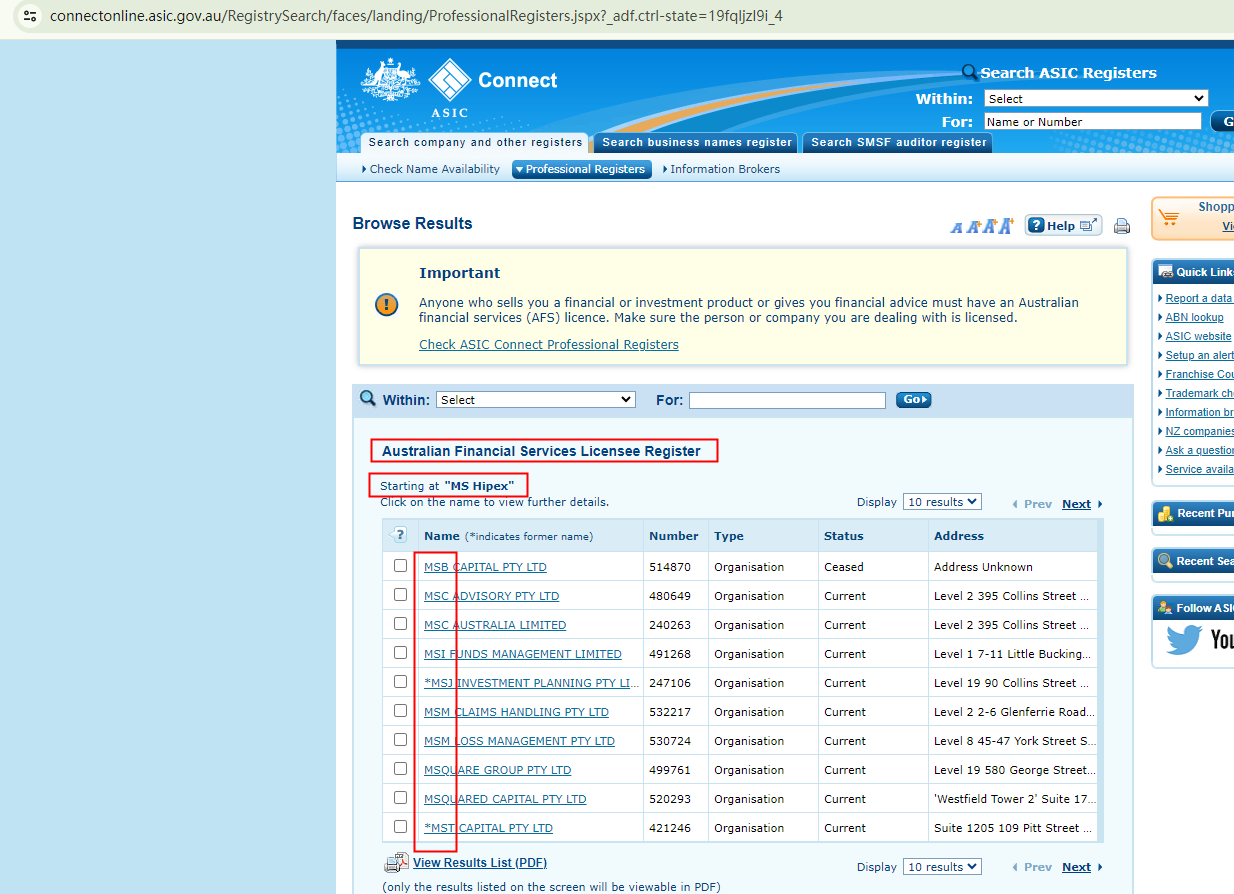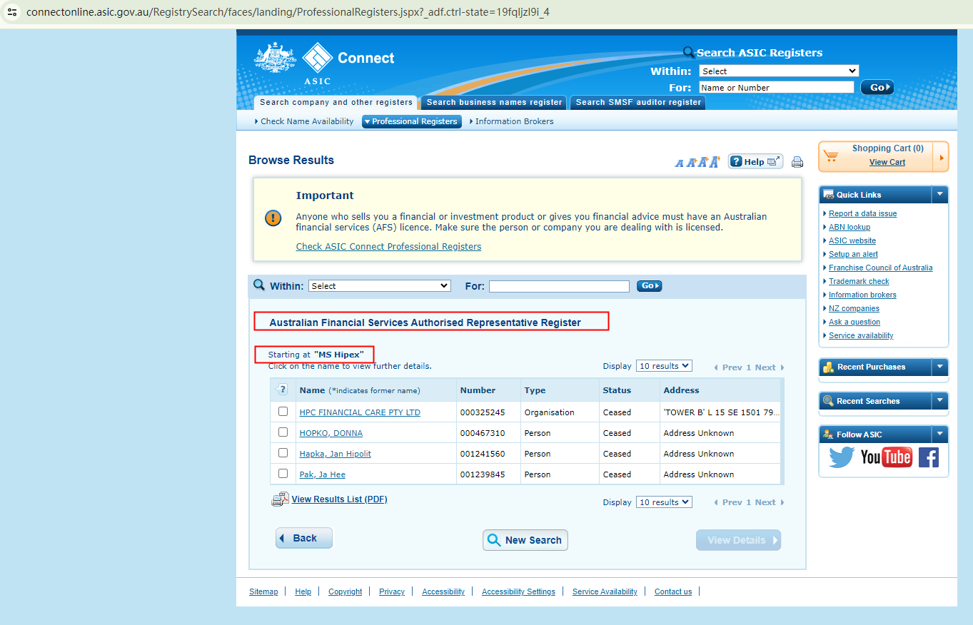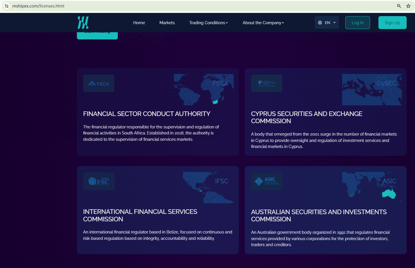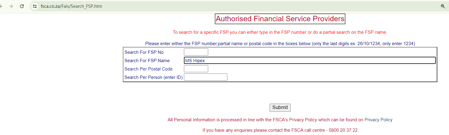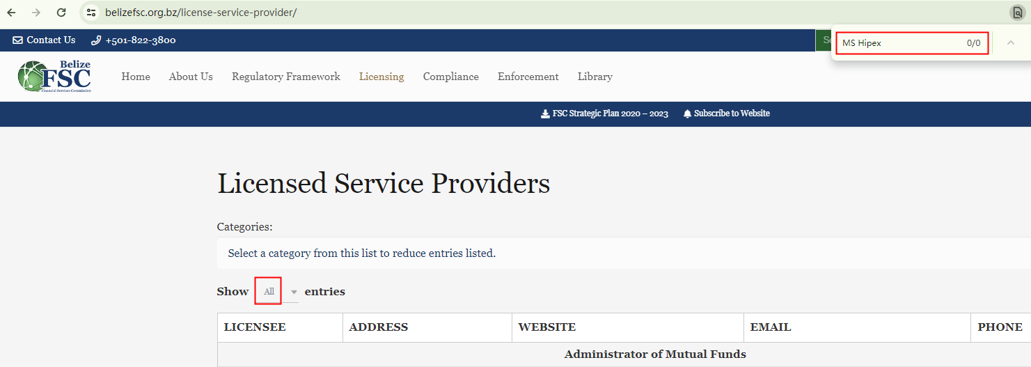 On its License web page, MS Hipex gives simple introductions about financial regulators, including the Financial Sector Conduct Authority (FSCA), the CySEC, the Belize Financial Services Commission (Belize FSC), and the Australian Securities and Investments Commission (ASIC), to give an impression of legitimacy. However, it is not regulated by any of these entities.
