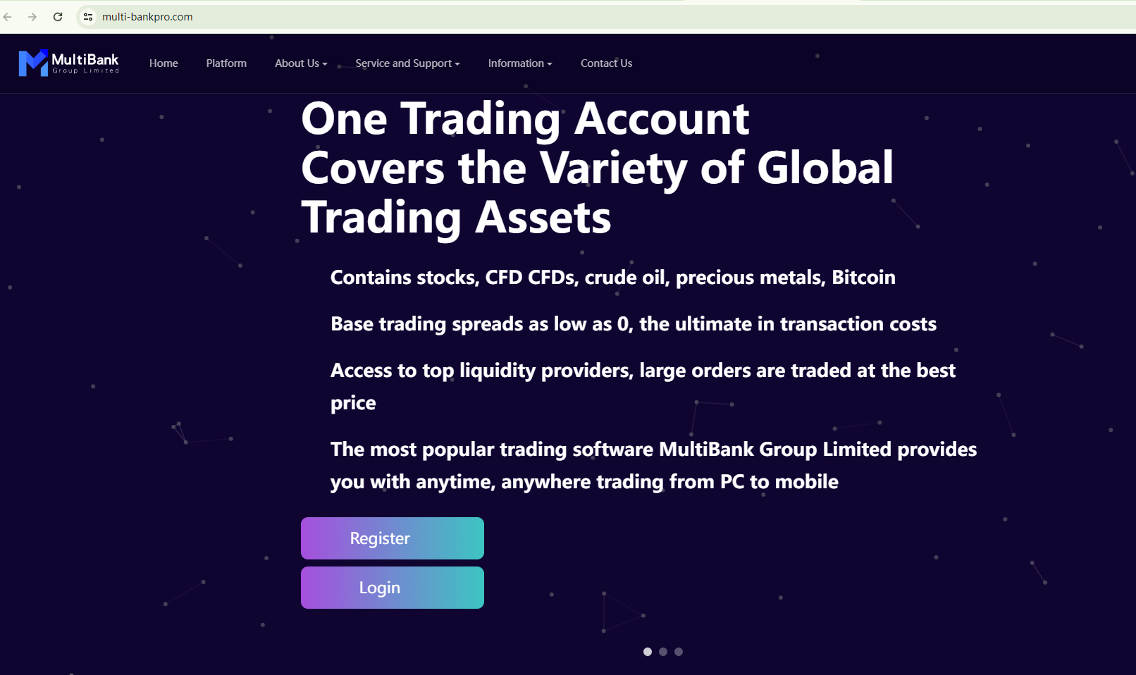 BrokersView found that the domain "https://www.multi-bankpro.com/" is currently inaccessible. This is widely regarded as a significant red flag, as the suspension of a broker's website often points to underlying regulatory or operational issues.