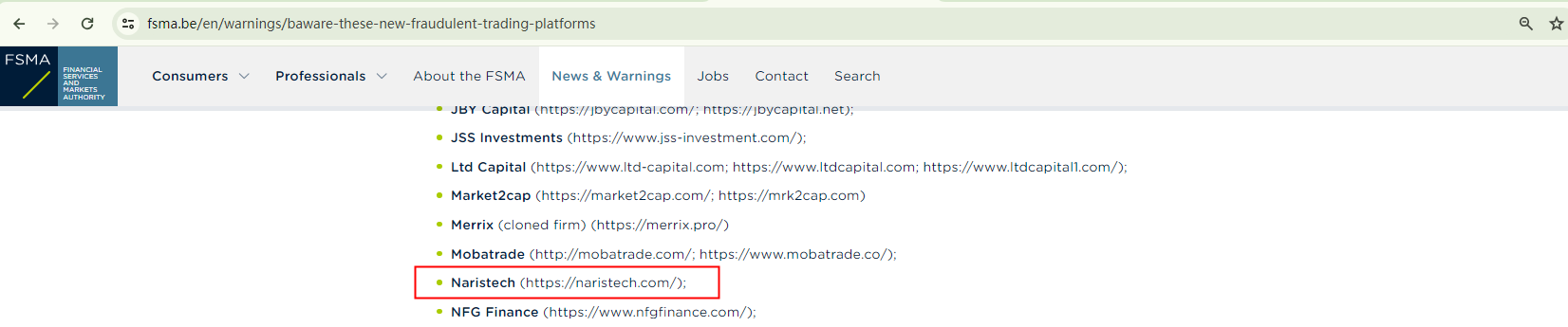On March 14, 2024, the Belgian Financial Services and Markets Authority (FSMA) added NARISTECH CORP to its warning list as a fraudulent trading platform. https://www.fsma.be/en/warnings/baware-these-new-fraudulent-trading-platforms