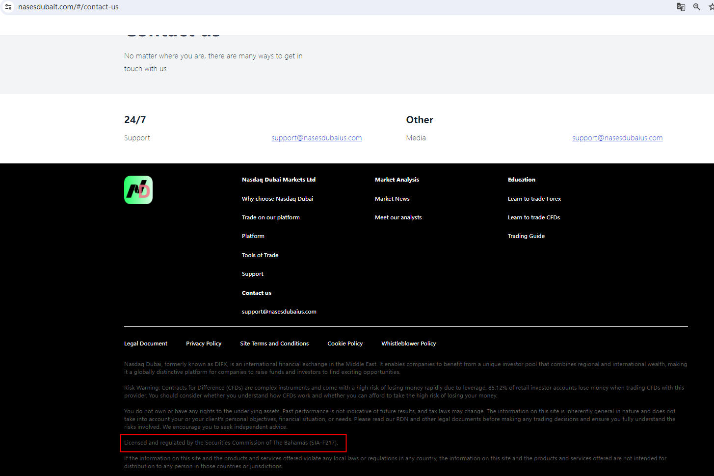 The most compelling evidence comes when the Securities Commission of the Bahamas (SCB) adds Nasdaq Dubai to its warning list, refuting the broker's false claims of being regulated by them.