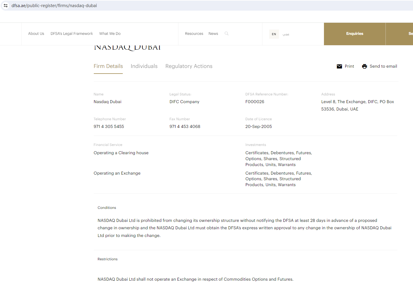 According to its website, it claims to be regulated by DFSA. After inquiry, we found the same brand name in DFSA, but after careful comparison, we found that the DFSA certificate was authorized in 2005, but the domain name of the brand Nasdaq Dubai was established in 2024. This is a misappropriation of the real Nasdaq Dubai brand name and regulatory letter. Please do not deposit money here.
