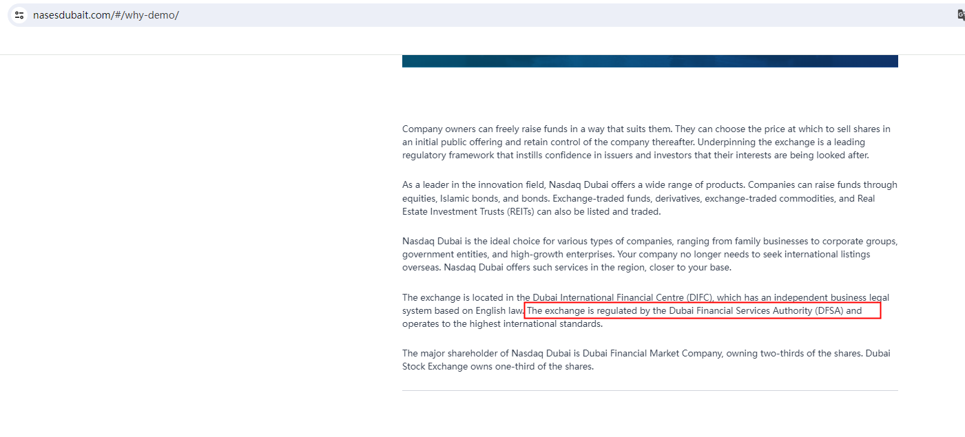Nasdaq Dubai appears to be a scam.
