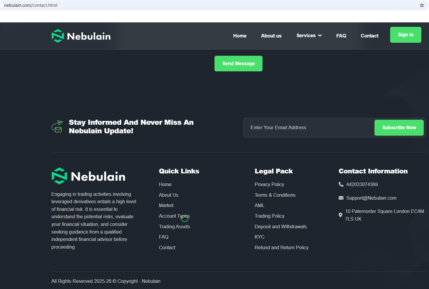 According to its website, Nebulain claims to be located in the UK. However, after checking with the Financial Conduct Authority (FCA), no matching information was found. Furthermore, the Federal Financial Supervisory Authority (BaFin) has issued a warning against Nebulain for lacking the required authorization.
