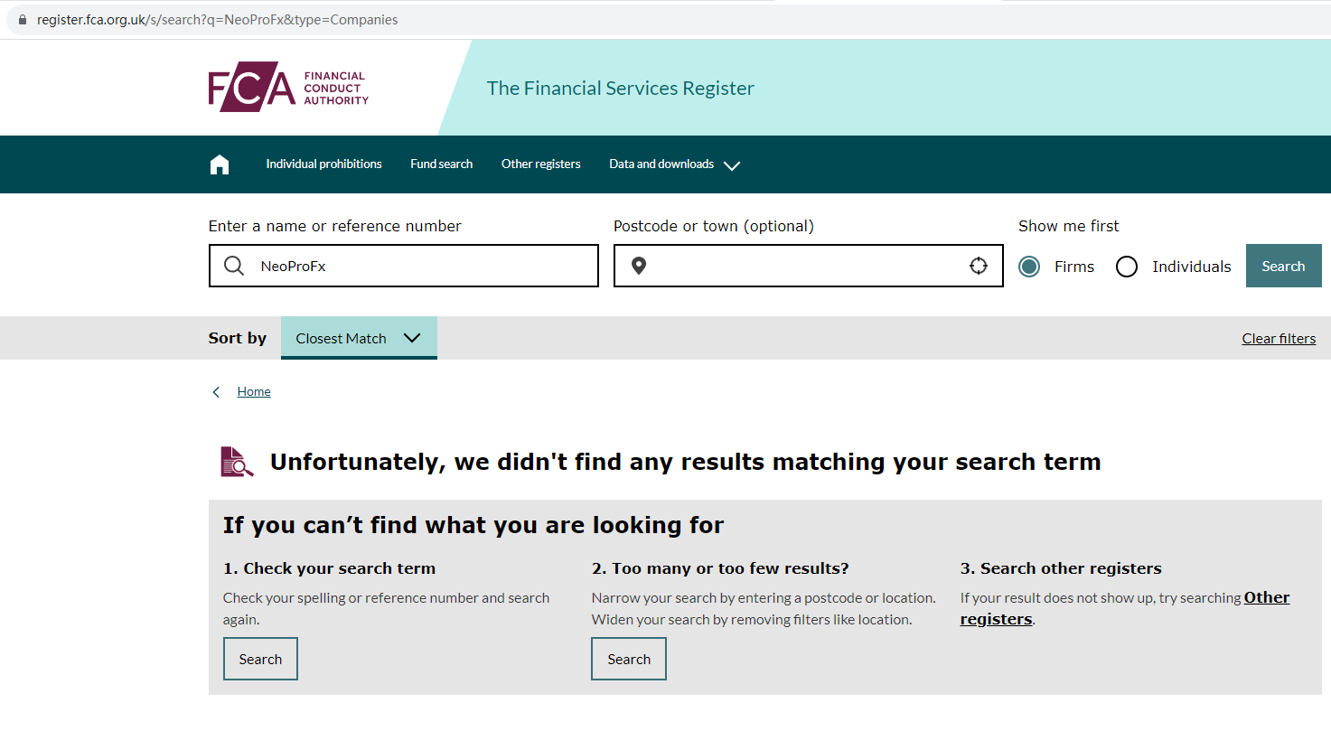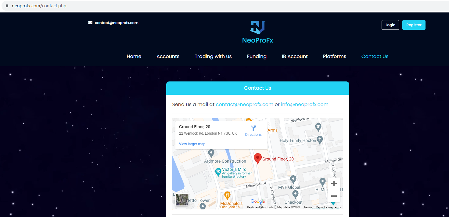There is no any regulatory information on its website. NeoProFx locates in the U.K, but we don't find any results on U.K Financial Conduct Authority (FCA) matching to NeoProFx. The truth is that NeoProFx is not under valid regulation by any regulators to do forex. Investors' funds in this broker are unsafe and cannot be protected by any law.