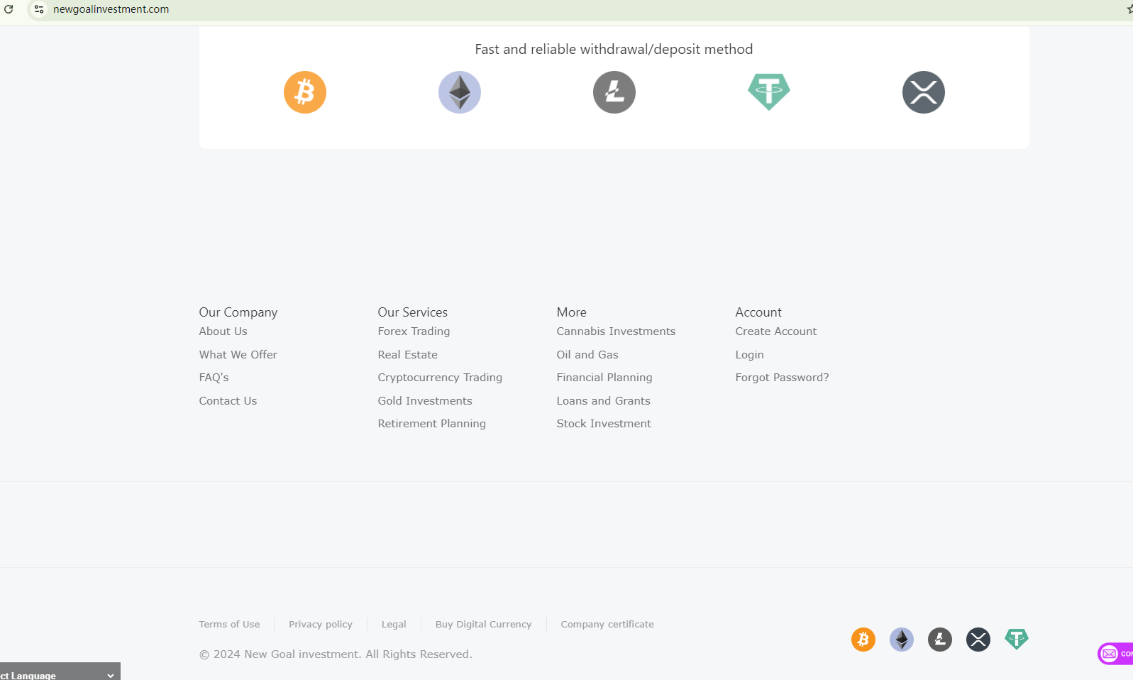 New Goal Investment, registered in April 2024, is a relatively new online platform. Upon investigation, we found that the site withholds crucial company information, leaving investors uninformed and unable to hold the company accountable for any issues. This lack of transparency raises concerns about the company's reliability and potential to disappear without a trace. Additionally, the Financial Conduct Authority (FCA) has issued a warning about New Goal Investment due to its unlicensed status.