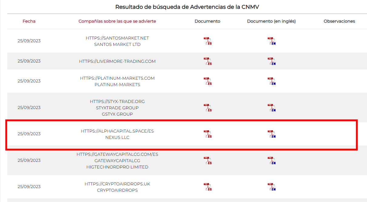 On 25 September 2023, the Comisión Nacional del Mercado de Valores (CNMV) issued a warning that NEXUS LLC was providing financial services or products without authorisation. You may visit: https://www.cnmv.es/Portal/ResultadoBusqueda.aspx?tipo=1&sortExpression=Fecha&sortDirection=1&page=0