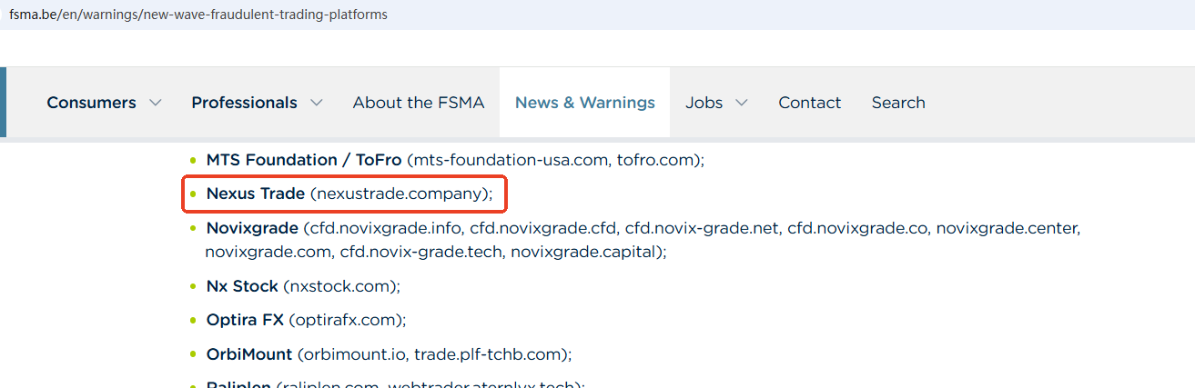 On July 24, 2025, the Financial Services and Markets Authority (FSMA) issued a warning about Nexus Trade Company for the lack of the required authorization.