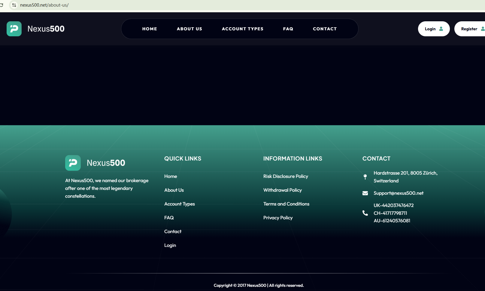 While NEXUS500 claims to be a brokerage firm, it doesn't provide any useful information to prove its authenticity and legitimacy. This lack of transparency indicates substantial risks. In addition, the Comisión Nacional del Mercado de Valores (CNMV) has added NEXUS500 to its warning list for providing investment services without authorization.