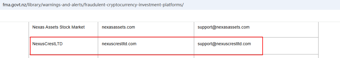 What's more, we found that the New Zealand Financial Markets Authority (NZ FMA) added Nexuscrestltd to its warning list, stating that this is a fake investment platform.