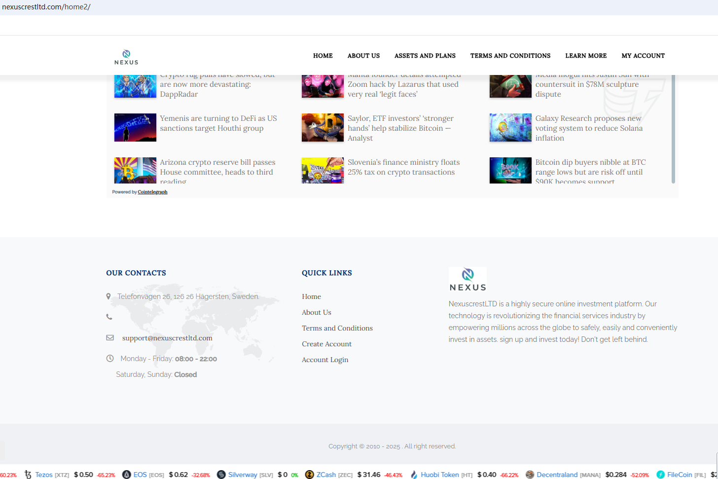 BrokersView found that the domain "https://nexuscrestltd.com/home2/" is currently inaccessible. This is widely regarded as a significant red flag, as the suspension of a broker's website often points to underlying regulatory or operational issues.