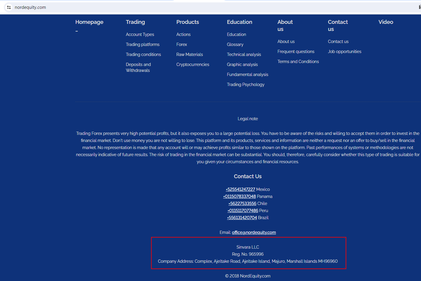 NordEquity claims to be operated by Sinvara LLC, which is registered with the Marshall Islands Registry (IRI), No. 965996.