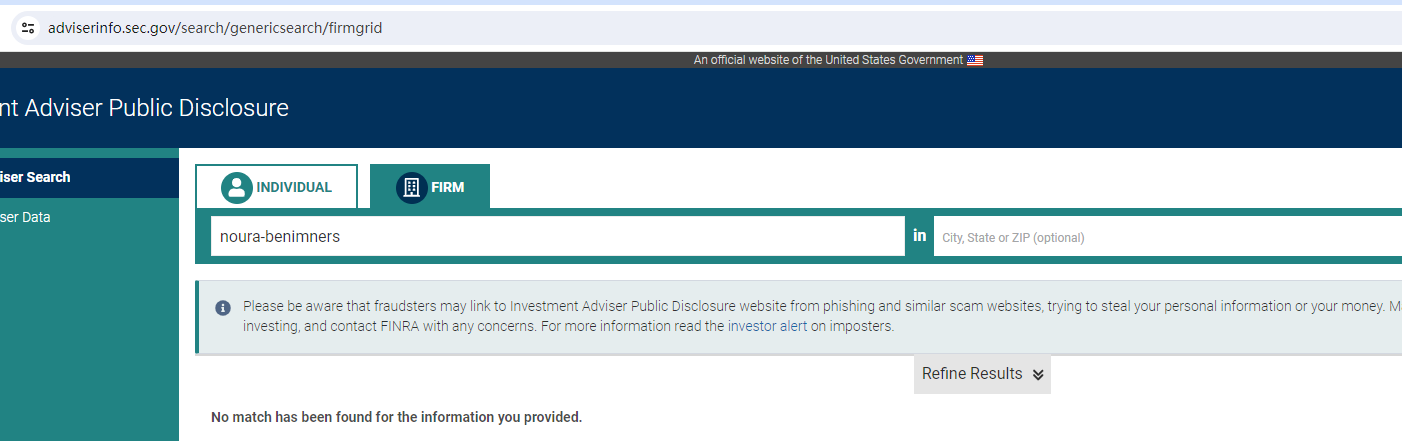 nourabenimners.com claims to be regulated by the US Securities and Exchange Commission (SEC). We searched for it but found no matching results.