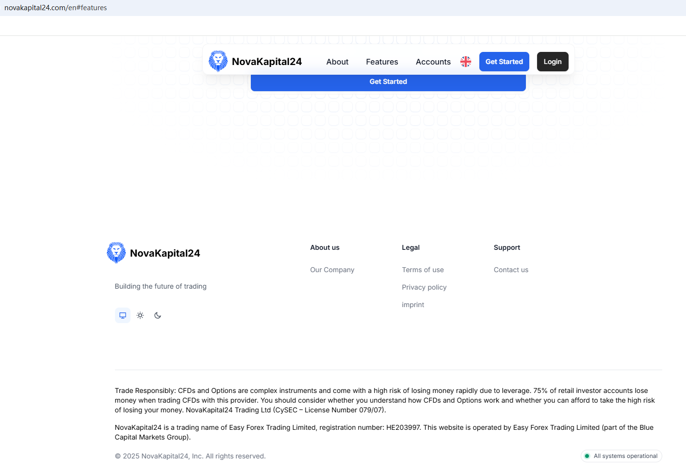 According to its website, it is part of Blue Capital Markets Group and regulated by the Cyprus Securities and Exchange Commission (CySEC). However, our investigation revealed that novakapital24.com is not listed in CySEC's records. NovaKapital24 has stolen the regulatory information of a compliant company in an attempt to impersonate it. In addition, the Federal Financial Supervisory Authority (BaFin) issued a warning against NovaKapital24 for lacking the required authorization.