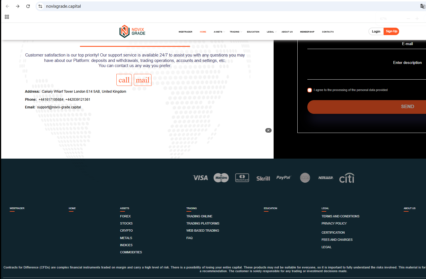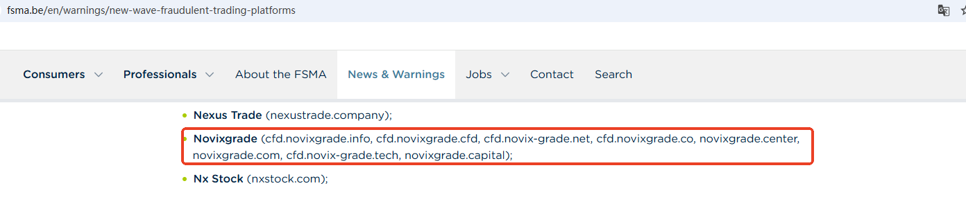 2025년 7월 24일, 금융서비스시장청(FSMA)은 Novixgrade가 필요한 승인을 받지 않았다는 이유로 경고를 발표했습니다. https://www.fsma.be/en/warnings/new-wave-fraudulent-trading-platforms