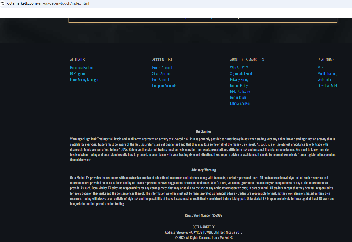 In addition, the Cyprus Securities and Exchange Commission (CySEC) added Octa Market FX to its warning list, stating it does not belong to an entity which has been granted an authorization for the provision of investment services and/or the performance of investment activities.