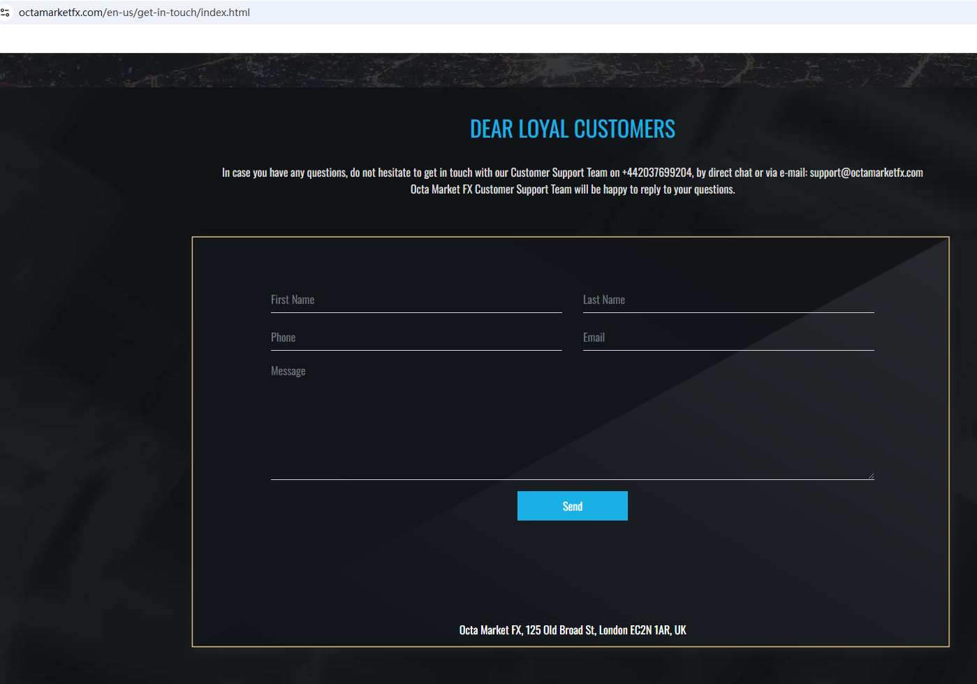 In essence, Octa Market FX is not regulated by any governing body. Entrusting it with investors' funds is highly risky, as there are no legal protections in place to safeguard the funds.