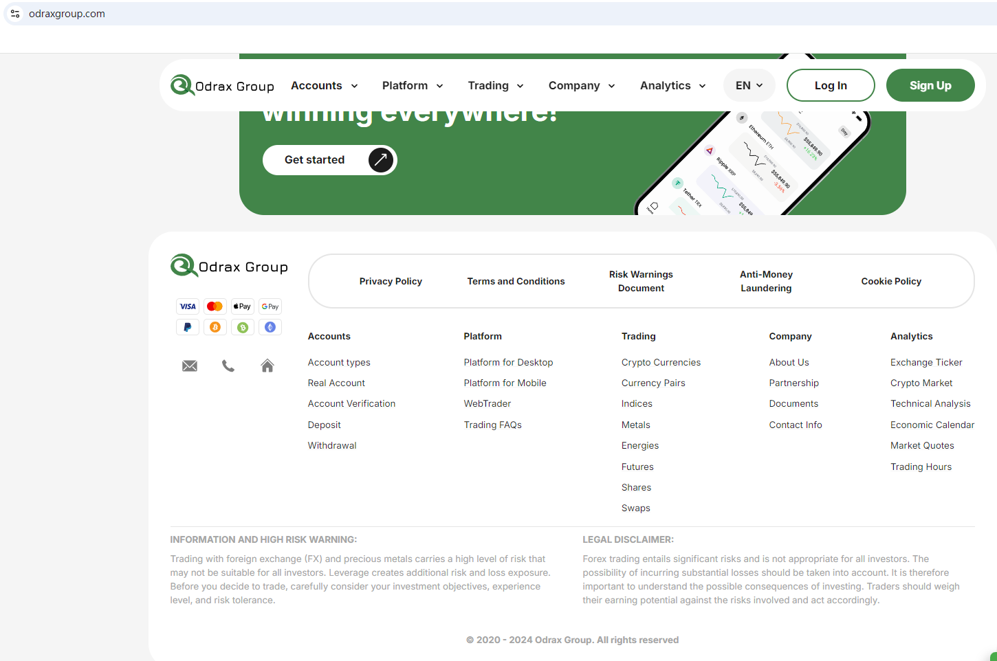 BrokersView found that the domain "https://odraxgroup.com/" is currently inaccessible. This is widely regarded as a significant red flag, as the suspension of a broker's website often points to underlying regulatory or operational issues.
