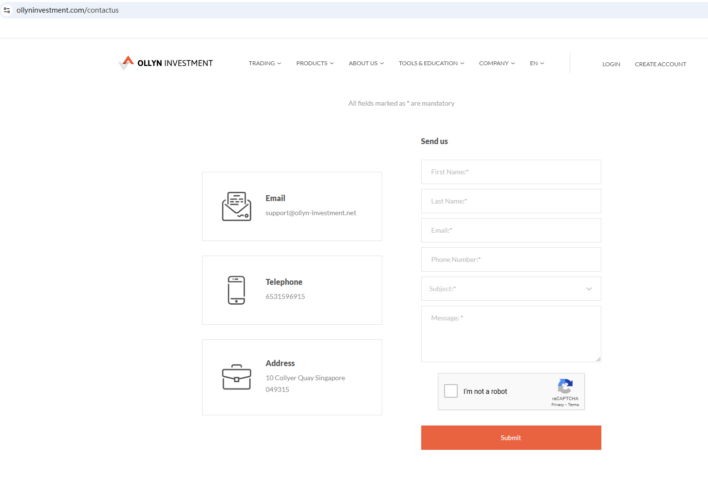 Ollyn Investment PTE LTD appears to be a scam.