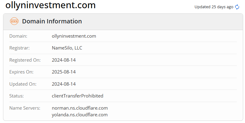 BrokersView found that the domain "ollyninvestment.com" is currently inaccessible. This is widely regarded as a significant red flag, as the suspension of a broker's website often points to underlying regulatory or operational issues.