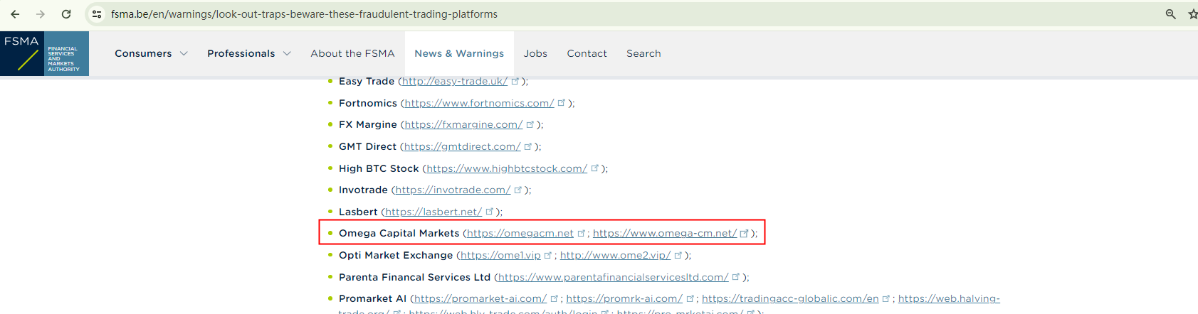 Another compelling evidence of its illegitimacy comes from the Financial Services and Markets Authority (FSMA), which has added Omega Capital Markets to its warning list as a fraudulent platform and advised investors to steer clear of it.