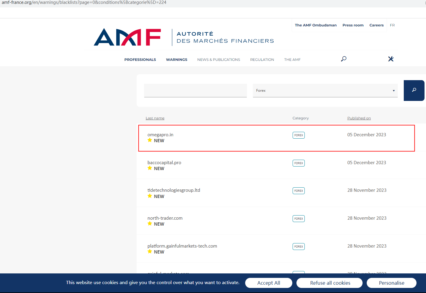 On 5 Decmber, 2023, the Autorité des Marchés Financiers (AMF) issued a warning against OmegaPro, believing this broker might be providing financial services or products without proper authorization. https://www.amf-france.org/en/warnings/blacklists?page=0&conditions%5Bcategorie%5D=224