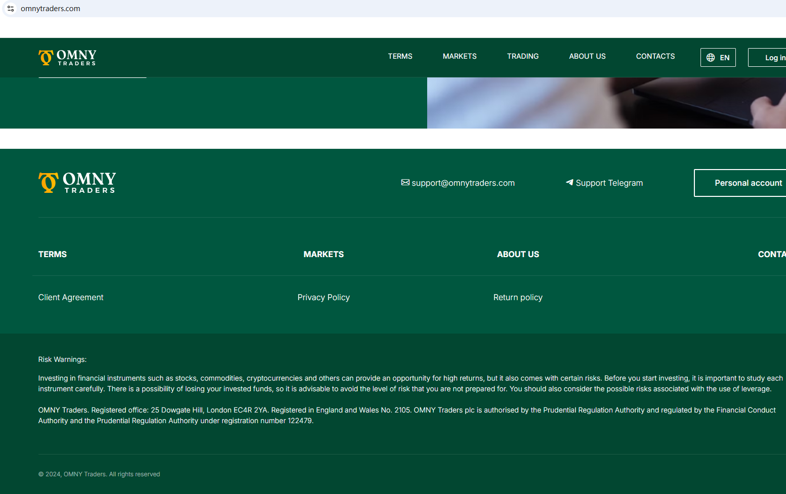 According to its website, it claims to be regulated by Financial Conduct Authority (FCA). However, we found that the Financial Conduct Authority (FCA) issued a warning against OMNY Traders, believing this company might be providing financial services or products without proper authorization in the UK.