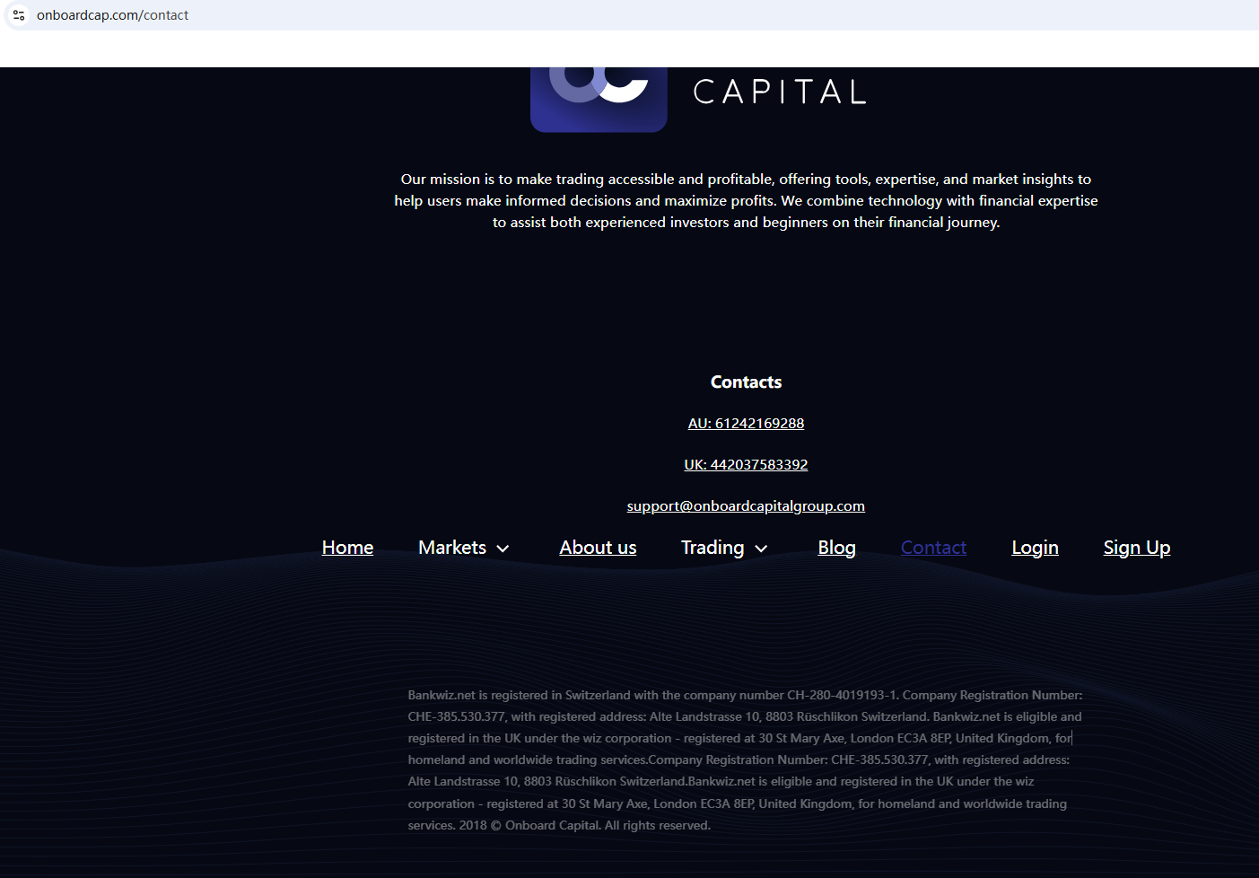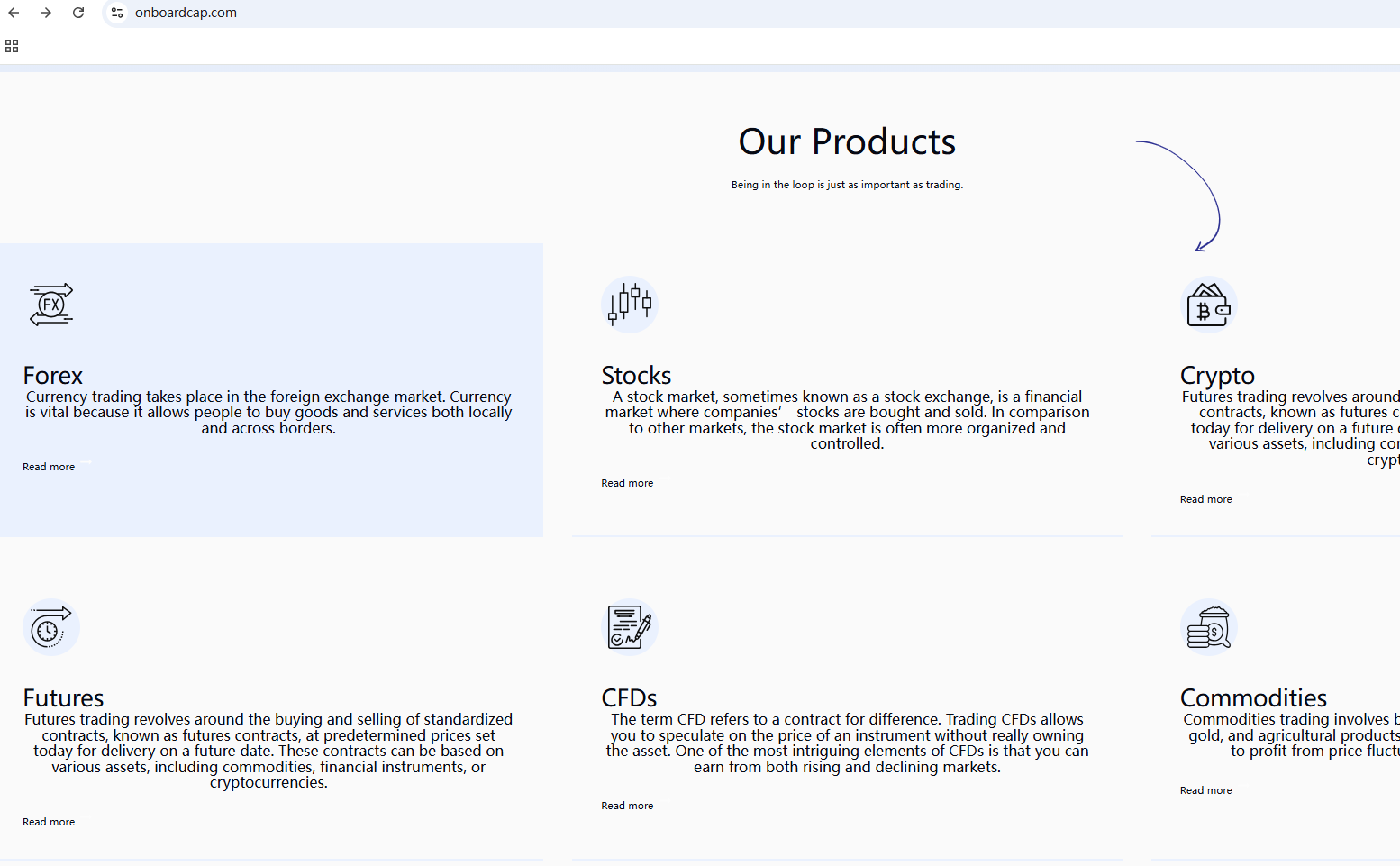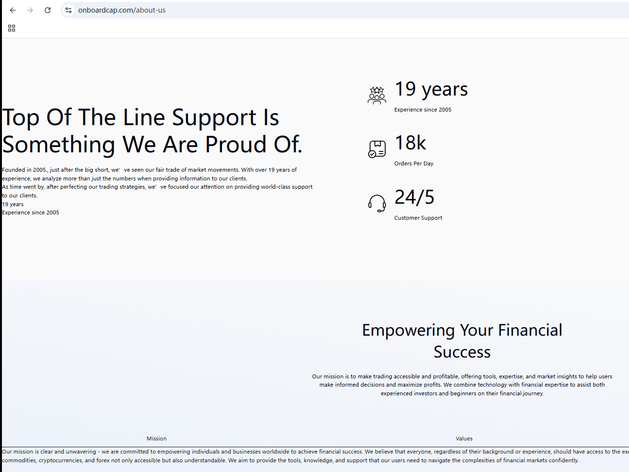 BrokersView found that the domain "onboardcap.com" is currently inaccessible. This is widely regarded as a significant red flag, as the suspension of a broker's website often points to underlying regulatory or operational issues.