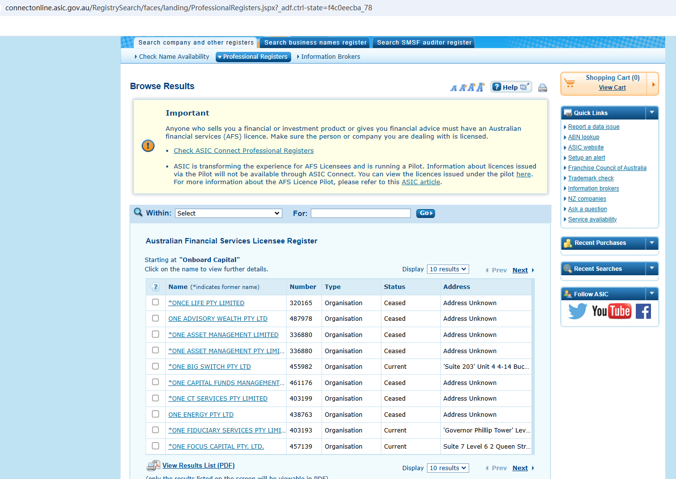 Australia Securities & Investment Commission (ASIC). And the Financial Conduct Authority (FCA) issued a warning against Onboard Capital, believing this company might be providing financial services or products without proper authorization in the UK.
