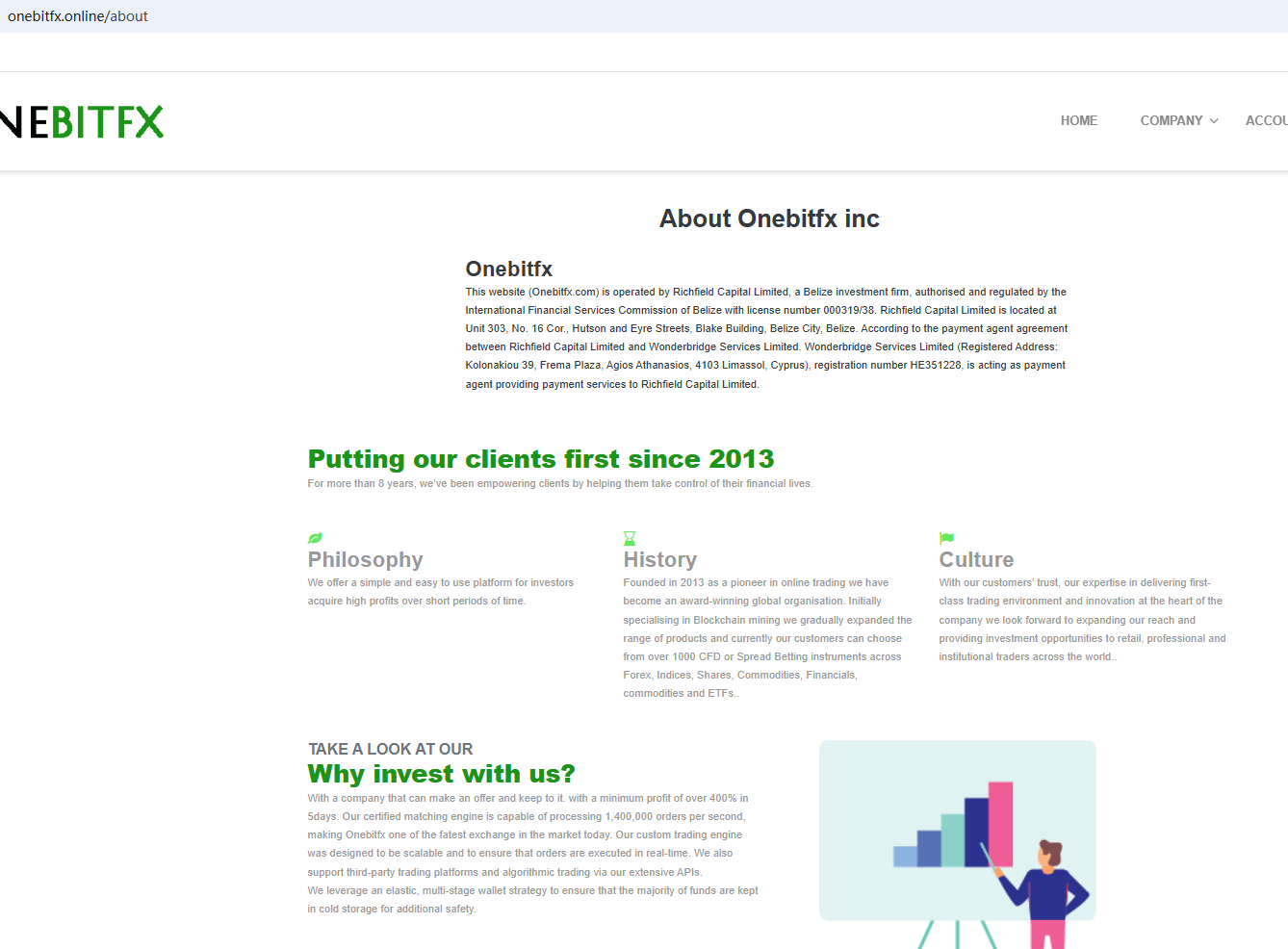 In essence, Onebitfx is not regulated by any governing body. Entrusting it with investors' funds is highly risky, as there are no legal protections in place to safeguard the funds. Onebitfx appears to be a scam.