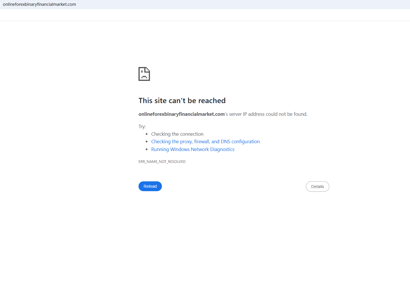 BrokersView found that the domain "onlineforexbinaryfinancialmarket.com" is currently inaccessible. This is widely regarded as a significant red flag, as the suspension of a broker's website often points to underlying regulatory or operational issues.