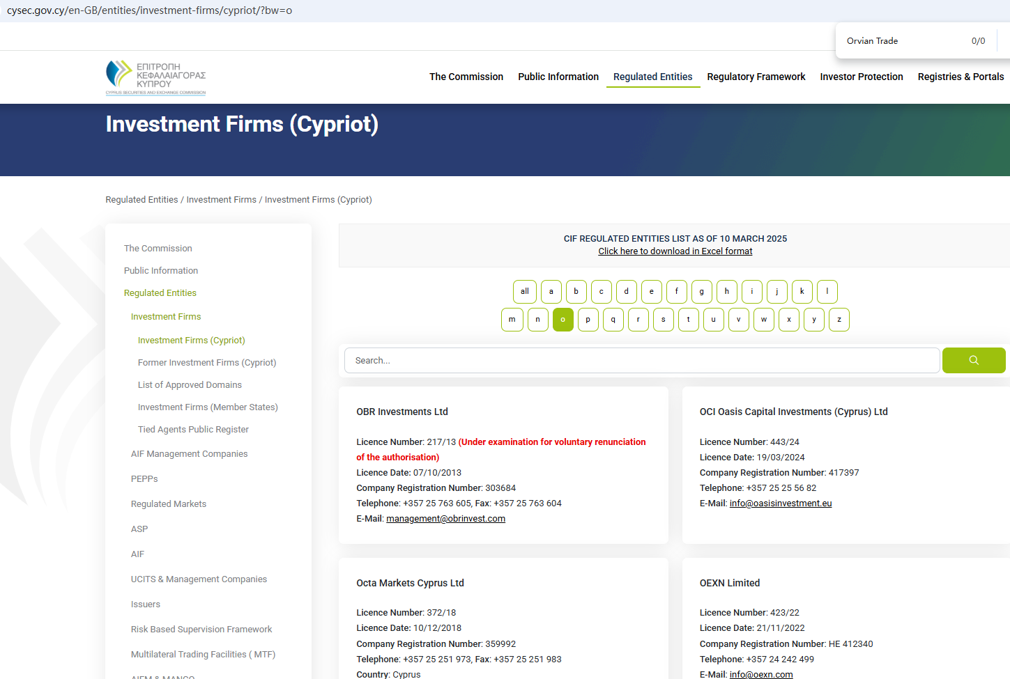 According to its website, it is regulated by both the Financial Conduct Authority (FCA) and the Cyprus Securities and Exchange Commission (CySEC). However, a search revealed no matching information with CySEC. Furthermore, the FCA issued a warning regarding Orvian Trade, suspecting that this company may be offering financial services or products without the necessary authorization.