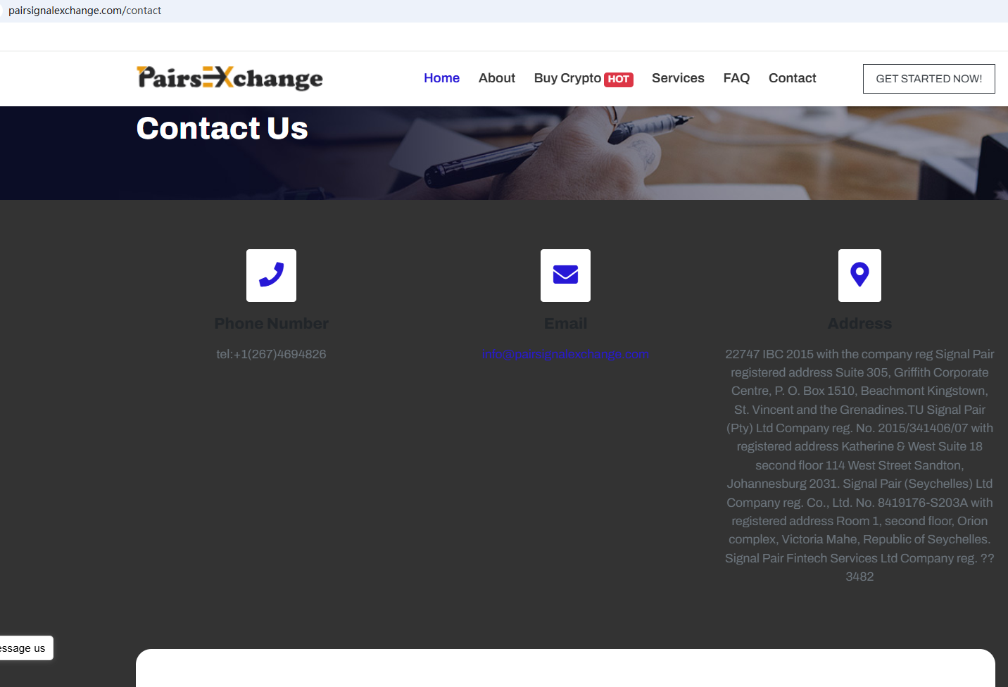 The website claims to be a UK-based financial company registered with both the St. Vincent and the Grenadines Financial Services Authority (SVG FSA) and the Seychelles Financial Services Authority (Seychelles FSA). As is well known, the SVG FSA does not have the authority to regulate forex trading. We checked with the authoritative Seychelles FSA but found no matching information with the Seychelles FSA. In addition, the National Securities Market Commission (CNMV) issued a warning against PAIRS EXCHANGE, believing this company might be providing financial services or products without proper authorization.