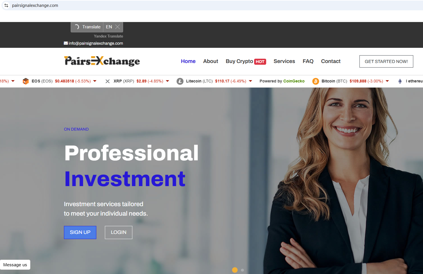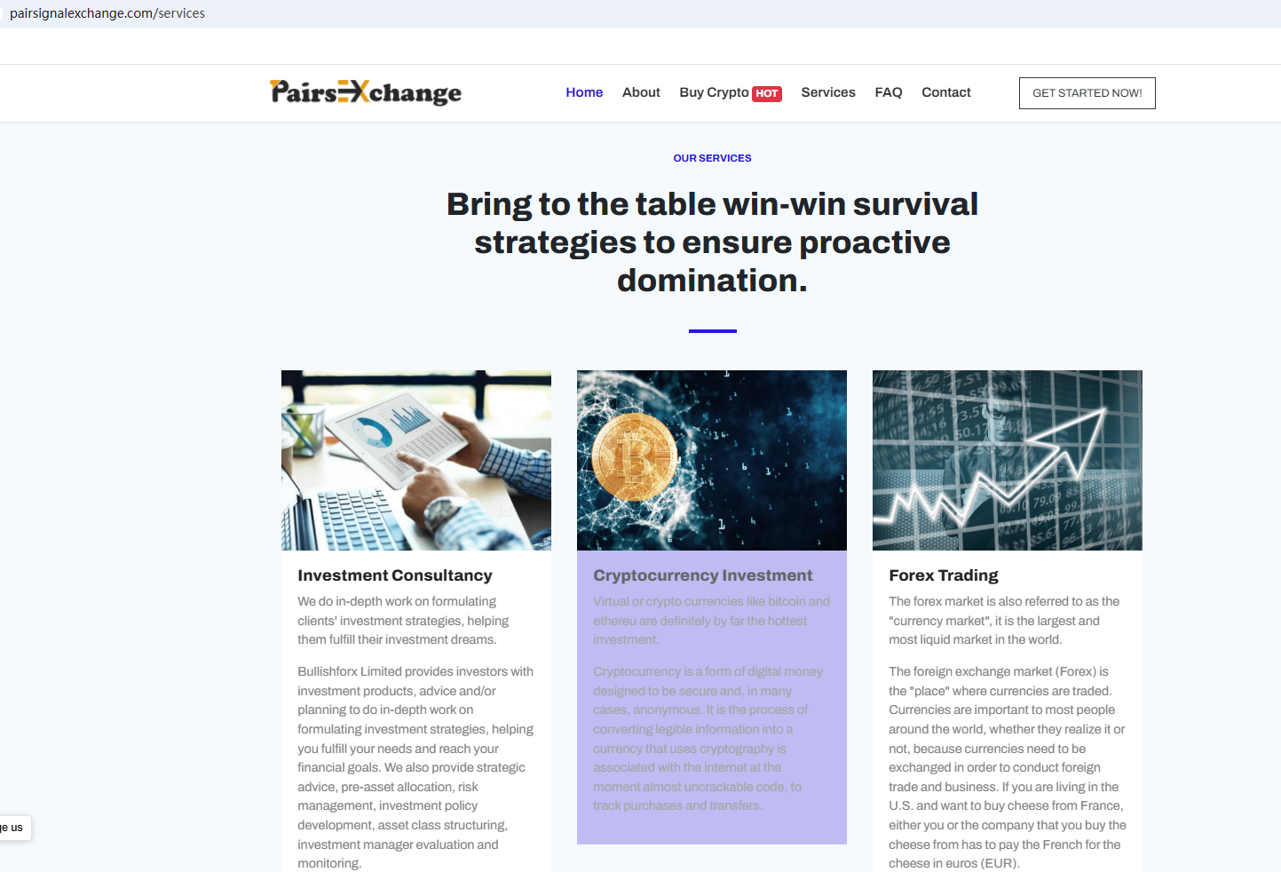 PAIRS EXCHANGE is unregulated and offers no legal safeguards for investors' money. It appears to be a scam.