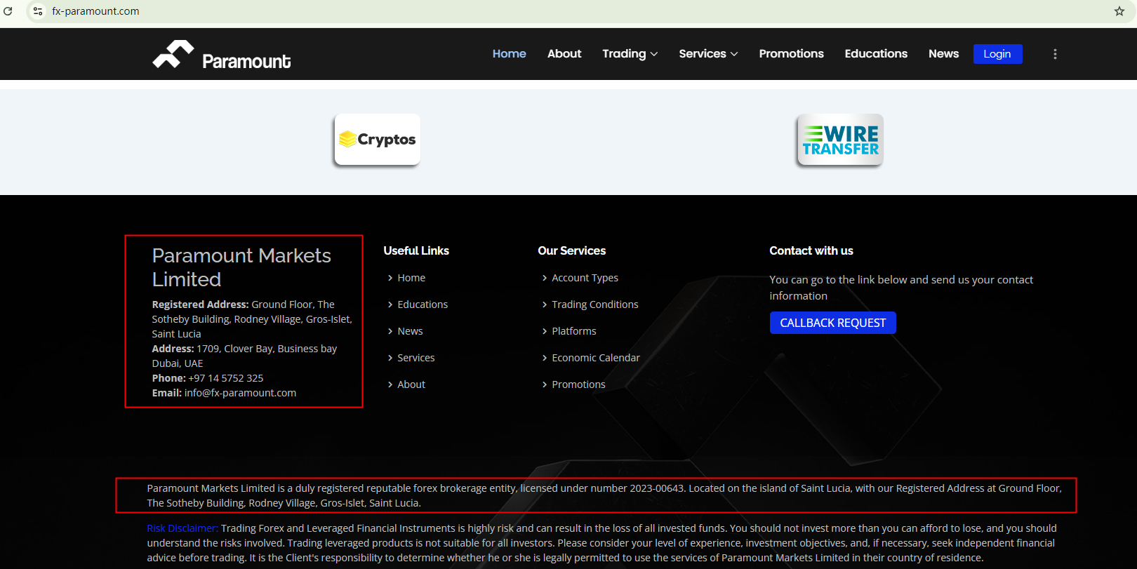 Paramount Markets Limited, formerly known as Paramount FZ LLE, has recently changed its logo and name. However, our verification indicates that it remains an unlicensed forex broker. Although it claims to be registered in St. Lucia, it is important to note that this is an offshore jurisdiction offering minimal investor protections. Additionally, St. Lucia does not license forex trading.